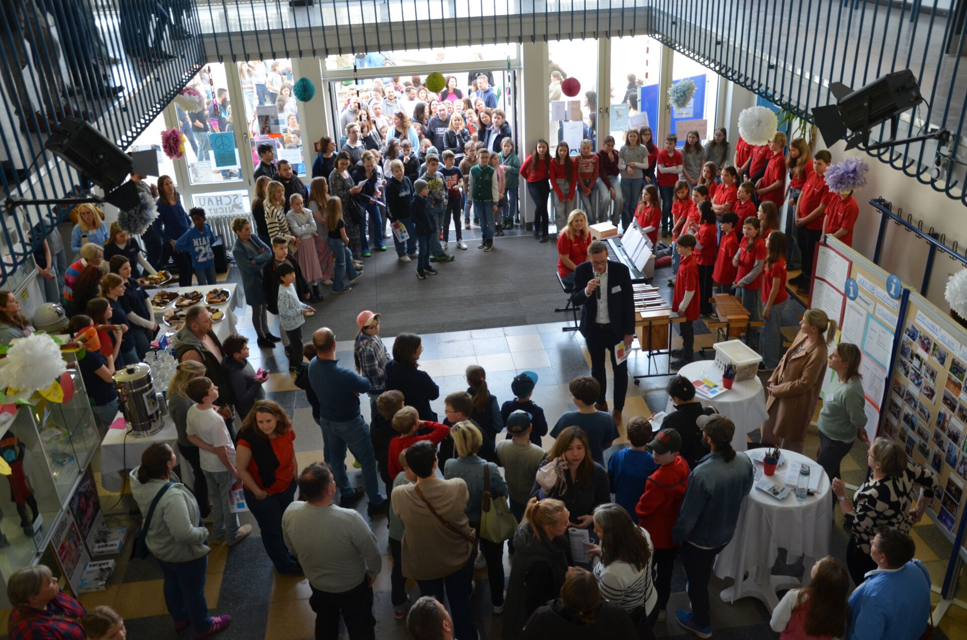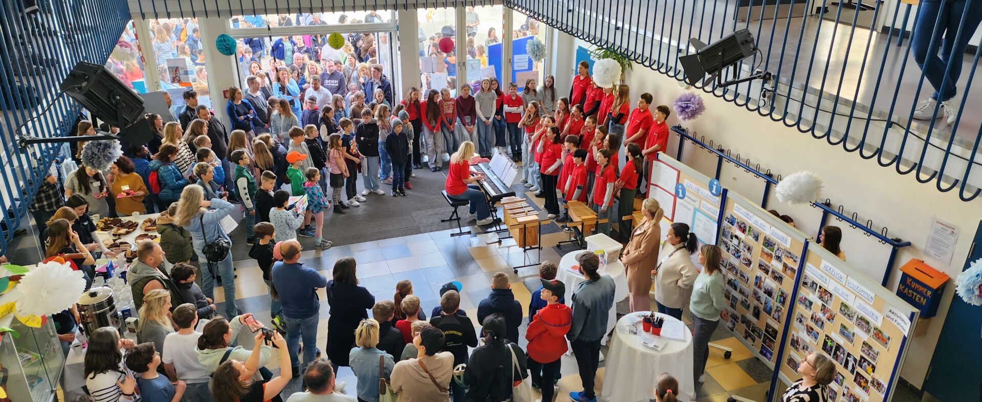 Außerdem gibt es auch verschiedene Musikbeiträge, z. B. von der Chorklasse, der Bläserklasse sowie der Schulband.