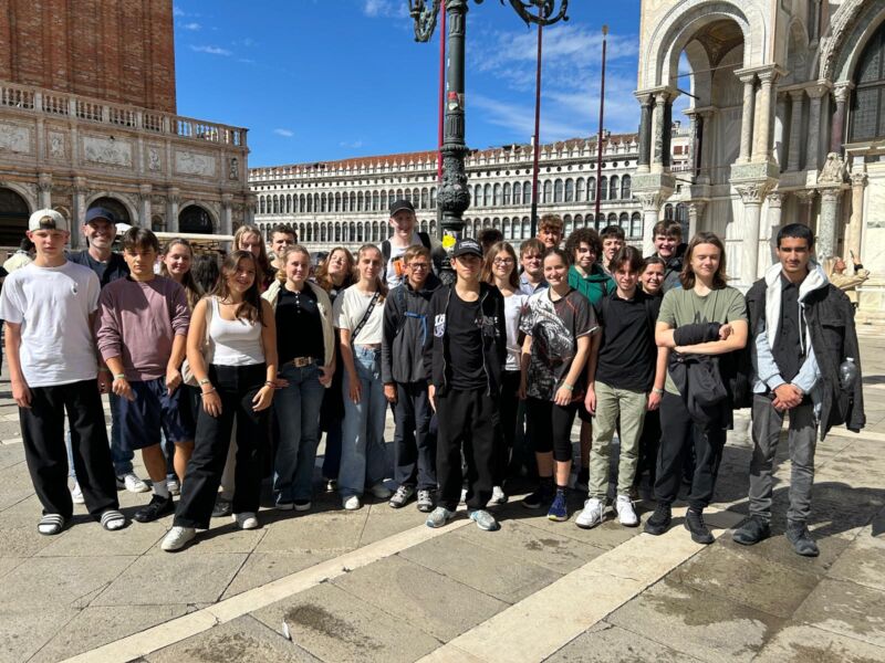 Vom 22. bis 26. September 2025 fand die gemeinsame Abschlussfahrt der Klassen 10a und 10d statt – sie führte die Gruppe in den sonnigen Norden Italiens, genauer gesagt nach Lignano Sabbiadoro. Begleitet wurden die Abschlussschülerinnen und -schüler von den Lehrkräften Frau Kipperer, Frau Neukirch und Herrn Schien, die für ein abwechslungsreiches Programm sorgten. Unter anderem standen Besuche der Grotta Gigante sowie der Städte Triest und Venedig auf dem Programm.